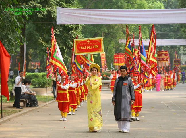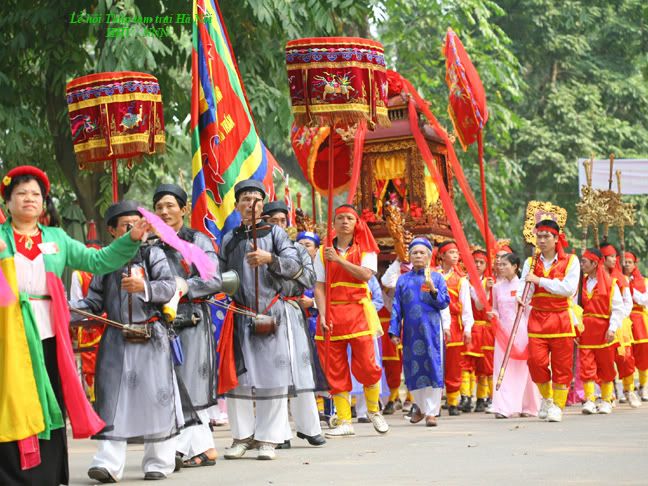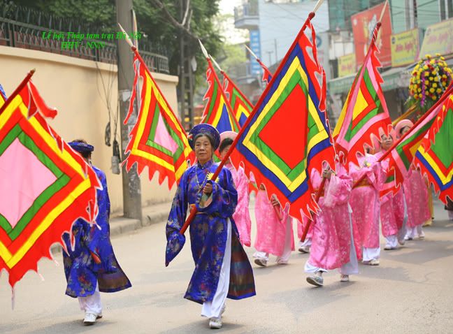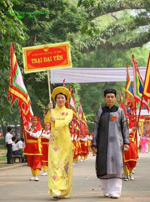 Nhân tiện mình cũng kể sơ qua về Lễ hội dân gian “Thập tam trại” của Hà Nội. (*) Từ rất lâu đời rồi vào tháng giêng âm lịch 13 trại (phần lớn thuộc quận Ba Đình) lại tổ chức lễ hội để tưởng nhớ danh nhân Hoàng Quý Công (làng Lệ Mật quận Long Biên) đã có công khai khẩn vùng đất hoang phía Tây kinh thành Thăng Long tạo nên vùng nông nghiệp trù phú với địa danh “Thập tam trại”. Đó là các làng Cống Vị, Ngọc Hà, Hữu Tiệp, Đống Nước, Đại Yên, Liễu Giai, Kim Mã, Vạn Phúc (Vạn Bảo), Vĩnh Phúc, Bảo Khánh, Thủ Lệ, Cống Yên, Giảng Võ (thuộc quận Ba Đình), Hào Nam (thuộc quận Đống Đa). Các trại ngày xưa hoàn toàn sống bằng nghề nông và đánh cá (một số trại như Đại Yên còn có thêm nghề trồng thuốc Nam, trại Ngọc Hà, Hữu Tiệp có nghề trồng hoa và Hào Nam nghề trồng rau). Lễ rước xuất phát từ các làng đến miếu Núi Sưa ở vườn Bách Thảo làm nghi lễ dâng hương tưởng nhớ công ơn danh nhân và các bậc tiền nhân rồi rước đi vòng xung quanh vườn Bách Thảo. Trong lễ hội cũng biểu diễn tích cụ Hoàng Quý Công chém thuồng luồng cứu công chúa nhà Lý (nên được vua ban cho phép khai khẩn đất đai phía Tây kinh thành Thăng Long. Hàng năm ngày 23 tháng ba âm lịch dân 13 trại lại cử một đoàn mang lễ vật sang làng Lệ Mật cúng giỗ cụ). Lễ hội còn có tổ chức biểu diễn võ thuật, múa quạt, thi đấu cờ người v.v... Mình giới thiệu vài ảnh của người quen tham gia đoàn rước trong lễ hội dân gian này. Trại Đại Yên – làng thuốc nam. :emoticon-0157-sun: http://i294.photobucket.com/albums/m...IMG_1456-1.jpg http://i294.photobucket.com/albums/m...IMG_1457-1.jpg http://i294.photobucket.com/albums/m...IMG_1458-1.jpg http://i294.photobucket.com/albums/m...IMG_1459-1.jpg http://i294.photobucket.com/albums/m...e/IMG_1460.jpg http://i294.photobucket.com/albums/m...e/IMG_1461.jpg http://i294.photobucket.com/albums/m...e/IMG_1462.jpg http://i294.photobucket.com/albums/m...e/IMG_1463.jpg http://i294.photobucket.com/albums/m...e/IMG_1464.jpg |