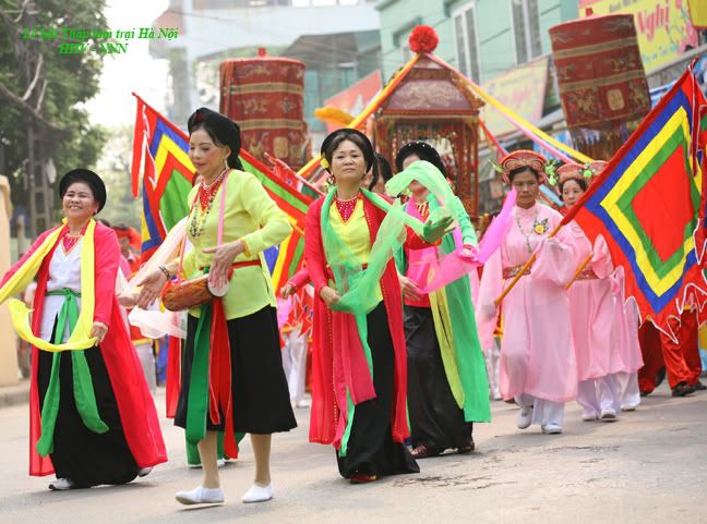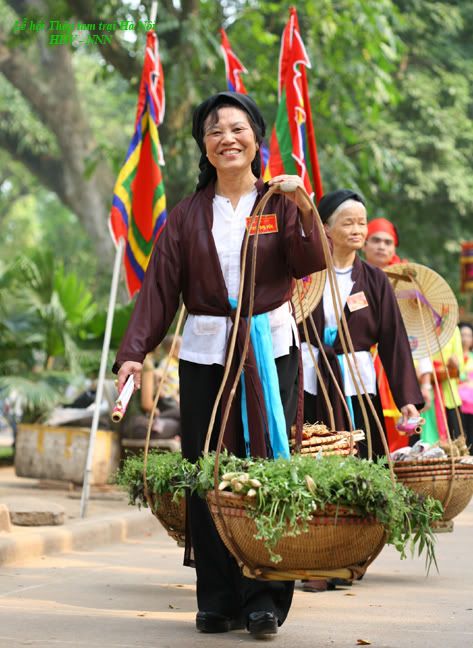 1- Ngày xưa thì chỉ có nhà giàu mới có váy chùng (dài) để mặc thôi còn nhà nghèo phải mặc váy cộc (ngắn) vừa tiết kiệm vừa dễ lao động em à. Cô bé mặc áo cánh, váy cộc không mặc áo tứ thân với váy chùng chắc là muốn thể hiện đủ kiểu cho phong phú. :emoticon-0100-smile 2- Chắc do hàng ngày đi làm cô bé quen mặc váy bó, váy ngắn nên mới mặc váy ngắn hơn mọi người. :D Nàng thơ à! có câu thành ngữ “vui như hội” mà em, mọi người trong lễ hội hân hoan, tự hào là đương nhiên rồi. :emoticon-0157-sun: Những người tham dự lễ hội đều là người dân chính gốc các làng. Từ các cụ già, các bác nghỉ hưu, bác sỹ, giáo viên, kỹ sư, tiểu thương nữa đều nghỉ làm để tập dượt và thi đua giữa các trại với nhau. Kết thúc lễ hội Thập tam trại, giải xuất sắc đội hình rước thuộc về trại Vạn Phúc, giải xuất sắc phần thi bầy mâm cỗ hoa quả thuộc về trại Liễu Giai. |