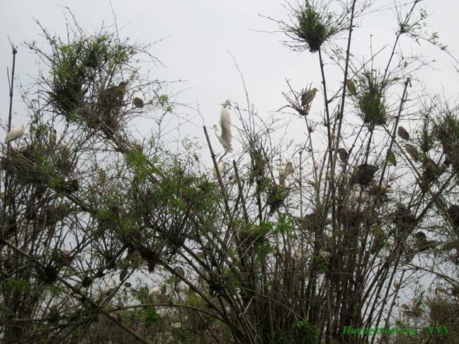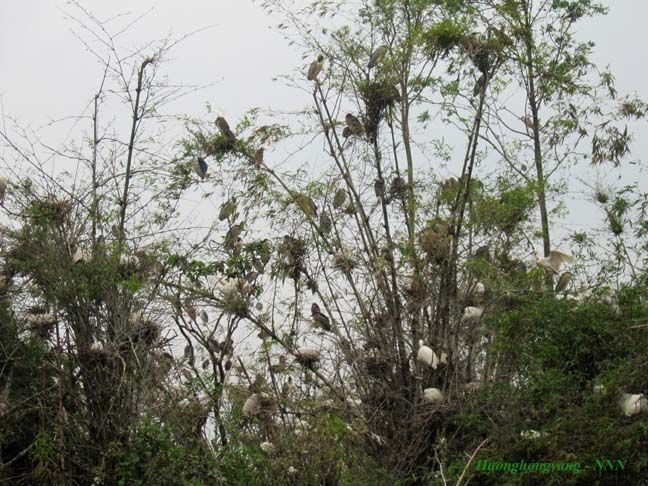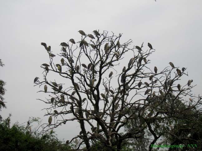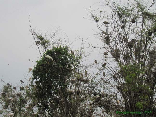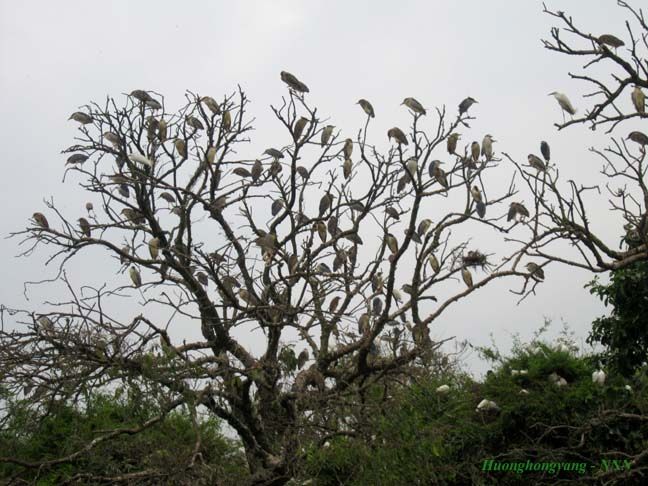 Chiều 31/3/2012 mình có dịp xuống Đảo Cò quê mình. Khi đến gần Đảo Cò thấy cây Đa mấy trăm năm tươi xanh bên bờ vực nay bị chặt những cành sâu, đứng trơ trụi, tiêu điều mà thấy lòng buồn vô cùng, mình không dám nhìn, không dám chụp ảnh cây Đa nữa. :emoticon-0107-sweat Hôm đó gió mùa đông bắc trời mây mù, mọi người xuống đò lúc mới 16h quá sớm nên cò chưa đi kiếm ăn về. Trên đảo chỉ có Vạc và Cò non ở nhà. Nhìn Cò, Vạc đậu trên cây ở đảo rất thích nhưng cái máy ảnh du lịch của mình không vươn xa được, trời lại âm u quá.
