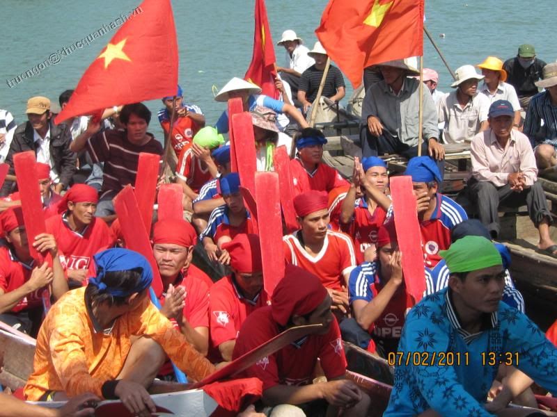 http://i1106.photobucket.com/albums/...1/IMG_4957.jpg http://i1106.photobucket.com/albums/...1/IMG_4959.jpg http://i1106.photobucket.com/albums/...1/IMG_4956.jpg Như mọi năm, bốn đội thuyền mang biểu tượng tứ linh: Long, Lân. Qui, Phụng đại diện cho bốn thôn của xã tham dự cuộc đua. Tất cả đang chờ con nước lớn |