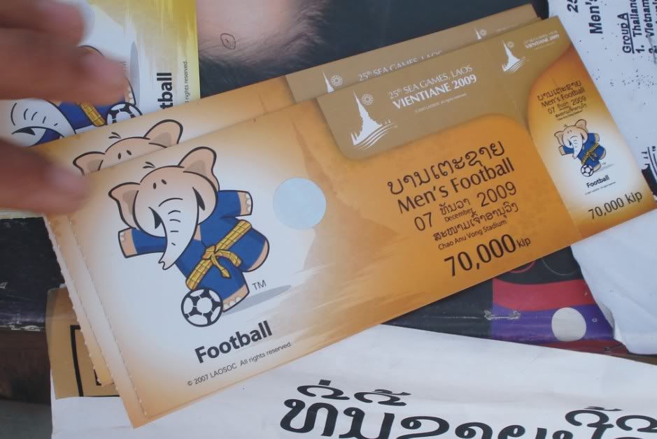 Như vậy 4 đội vào bán kết đã không tồn tại cái tên Thailand. Xin chúc mừng đội tuyển Malaysia đã lội ngược dòng thành công! Vì công việc nên tôi đã không ở lại Vientiane 2009 đến trận chung kết, tiếc hùi hụi nhưng cũng phải về thôi! Vé vào cửa sân vận động để xem bóng đá với giá 70.000kip x 24 = 168.000VND Cổ động viên Laos cần phải sang Việt Nam học tập. |