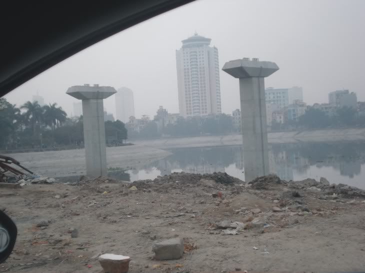 Nhìn hình ảnh trên, các bác có đoán ra công trình gì không?. Đây là hai mố cầu trên lòng hồ Hoàng Cầu - Đống Đa - Hà Nội. Hiện đang còn rất sơ khai... Nhưng có lẽ không lâu nữa, chính tại khu vực này sẽ là nhà ga tàu điện trên cao đầu tiên của Hà Nội. Mọi cảnh vật xung quanh sẽ thay đổi theo công trình thì bức ảnh trên sẽ có giá trị cổ tích :emoticon-0102-bigsm |