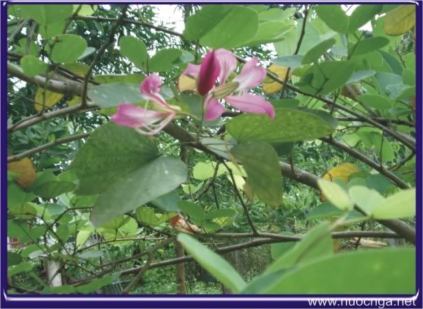 Bây giờ đã là cuối mùa Xuân rồi, nhanh thật. Loài hoa mà bạn HDA chụp ở nghĩa trang Đại Lộc, Quảng Nam có cái tên dân dã không lấy gì làm thơ mộng cho lắm là "Hoa Móng Bò", còn được gọi là "Lan Hoàng Hậu", tên khoa học Bauhinia variegata, họ Đậu. Nguồn: http://www.thiennhien.net/news/188/A...008-01-22.html |