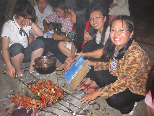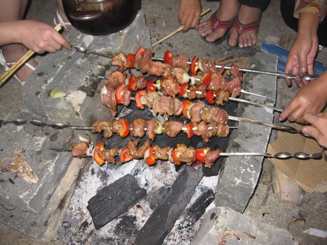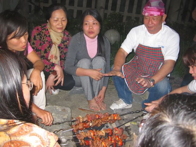 Bác đầu bếp cùng mọi người đang nướng Saslyk thơm lừng :emoticon-0123-party