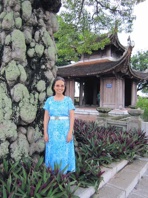 Hôm đó lúc ra về, cả nhà đã ngồi trong ô tô mình bảo “mẹ thích cây Gạo cổ thụ lắm, con vào chụp cho mẹ một kiểu đứng cạnh gốc cây” cả nhà cười vang. :emoticon-0100-smile Thế là con rể cùng mình quay vào và chụp được bức ảnh: “Bà lão 60 đứng bên chân cụ Gạo cổ thụ 210 tuổi” đây. :emoticon-0100-smile
