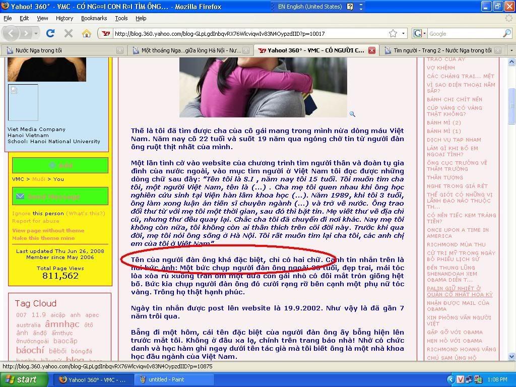 Tôi có vào trang http://poisk.vid.ru - trang web của chương trình TÌm người thân của truyền hình Nga. TÌnh cờ đọc được mẩu tin tìm kiếm này: