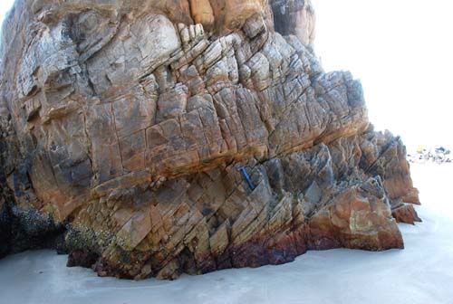 Đá mà bác Mì-chà. Geo giữ lời, no comment. Chỉ xin lưu ý: Những lỗ tròn nhỏ là vết tích khoan lấy mẫu nghiên cứu địa từ cổ (không phải Geo khoan, mà là cánh địa vật lý).