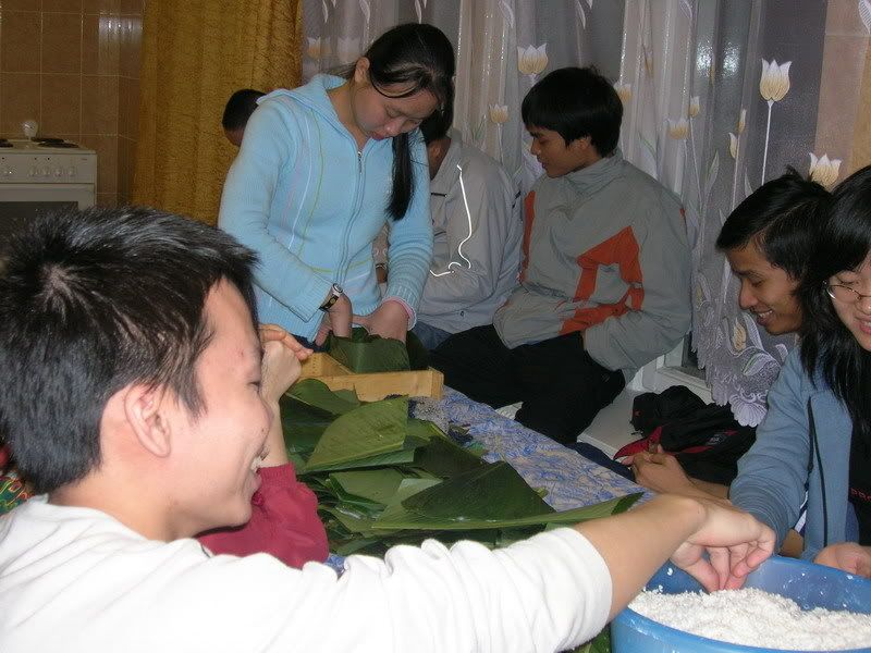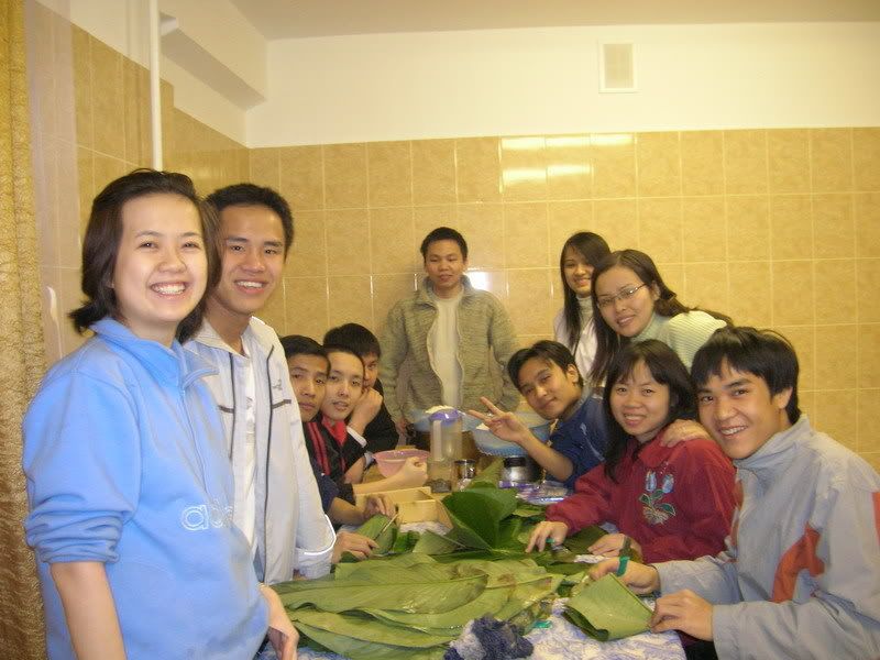 Trong mấy năm gần đây điều kiện đầy đủ. Tại các chợ người Việt có phục vụ bán bánh chưng gói sẵn, hoặc bán lá dong, lạt để có thể mua về tự gói. Sinh viên VN tại trường MITXT năm nào cũng cố gắng tổ chức gói bánh chưng. ACE trong trường quan niệm rằng mình đang sống ở bên đất khách nên cũng không dám đòi hỏi có một không khí tết giống như ở VN. Nhưng luôn cố gắng để tự tạo cho mình một không khí gần gũi nhất với tết. Năm nào Hóa tinh vi (HTV) cũng tổ chức gói bánh chưng, trông bánh chưng và đón giao thừa với những món ăn cổ truyền. Ngay từ 2 tuần trước tết, mọi người họp bàn nhau lại, thống nhất các món ăn cho đêm giao thừa, phân công công việc chuẩn bị tết, đóng tiền để cùng nhau đón một cái tết âm lịch thật ấm cúng. Thường thì vào tối 28 là tất cả thành viên của trường tập trung trên bếp hoặc tại phòng một ai đó, tổ chức gói bánh chưng. Đây là khoảng thời gian vui nhất. Mọi người cùng nhau rửa lá, ướp thịt, tách lạt, đồ đỗ... Ai biết gói bánh thì đều muốn tự mình gói chiếc bánh chưng cho chính mình. Sau đó cùng nhau trông những nồi bánh đang sôi sùng sục, thỉnh thoảng thêm nước nồi bánh, rồi đến sáng hồ hởi vui mừng vớt ra những chiếc bánh nóng hổi, thơm phức. Một không khí rất ấm cúng, thấm đượm tinh thần tết cổ truyền. Ấy thế mà còn tự hào chán khi gọi điện về cho nhà thưa rằng: "ở bên này bọn con còn gói bánh chưng nữa cơ, hơn bố mẹ ở nhà không gói..." Vào tối ngày 30. Các món ăn đón giao thừa được chuẩn bị trong cả ngày hôm đó. Thường thì có các món chính như: chả nem, canh măng, nộm, xôi gấc, giò lụa, đôi khi còn có dưa hành... Nhìn cũng rất ra dáng một bữa ăn giao thừa cuối năm. Đúng 20h bắt đầu tổ chức và bật sâm panh, mọi người cùng nhau hát bài Happy new year. Xa nhà đã 5 cái tết, em dường như đã quên mất cái cảm giác lạnh ở miền Bắc vào mùa đông, quên mất cái cảm giác mưa xuân hắt vào mặt khi đi đường vào sáng mùng 2. Nhưng chưa bao giờ quên được cảm giác chuẩn bị đón tết ở VN, và cảm giác đêm giao thừa cả nhà quây quần, rồi sáng mùng 1 cùng nhau lên chúc tết ông bà, cô bác họ hàng. Tết bao giờ cũng mang lại một cảm giác thật ấm cúng và thân mật. Có một số hình ảnh HTV chuẩn bị đón tết các năm trước. Mặc dù cũng không muốn đưa ảnh mà có mặt thành viên trong trường lên đây, nhưng ở đây toàn người nhà, em muốn chia sẻ cùng các bác không khí đón tết tại Nga của sinh viên bọn em. ACE HTV nào mà đọc được topic này thì cũng thông cảm cho tớ nhé, trong đây toàn người nhà ý mà :emoticon-0150-hands. Cùng nhau chuẩn bị, rửa lá, ướp thịt, tách lạt... http://i51.photobucket.com/albums/f3...Picture009.jpg Ướp thịt: http://i51.photobucket.com/albums/f3...Picture013.jpg Nào, chuẩn bị gói thôi... http://i51.photobucket.com/albums/f3...Picture015.jpg Ai biết gói thì gói, ai không biết thì ngồi xem và làm chân sai bảo. Em gái trong ảnh nhỏ tuổi (sinh năm 86) ấy thế mà gói bánh chưng đẹp lắm. http://i51.photobucket.com/albums/f3...Picture019.jpg Gạo nếp, đỗ, thịt đã vào khuôn, nhìn thèm quá: http://i51.photobucket.com/albums/f3...Picture024.jpg Và chiếc bánh đã hình thành http://i51.photobucket.com/albums/f3...Picture030.jpg Làm tí tá lả cuối năm trong lúc chờ bánh. Đánh cả đêm mà thắng thua chưa đầy... 10 rúp http://i51.photobucket.com/albums/f3...Picture034.jpg Tết, tết, tết, tết đến rồi. Tết đến trong tim mọi người. |