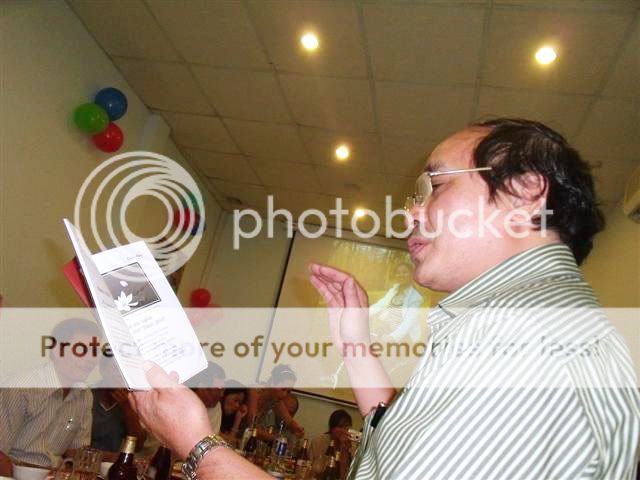 Cuộc gặp mặt đầu Xuân hôm qua rất vui và hoành tráng. Trong lúc chờ thư ký HoaMay tường thuật chi tiết, CK cũng xin góp mấy bức hình không đẹp lắm, chỉ mang tính tường thuật, các bác bổ sung thêm nhé. Chúc mừng hạnh phúc Tùng Linh http://i399.photobucket.com/albums/p...N/DSCF2124.jpg http://i399.photobucket.com/albums/p...N/DSCF2145.jpg |