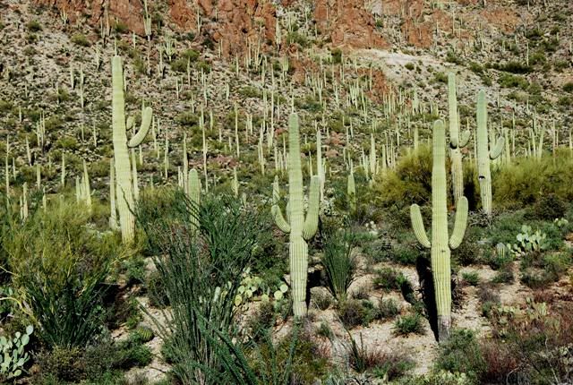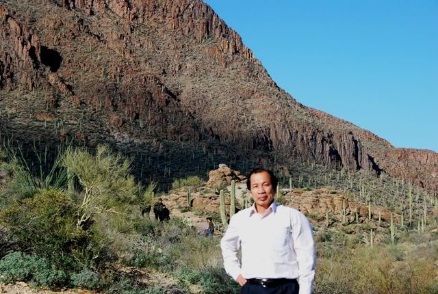Hôm đầu đến Arizona, Geo rón rén đi thăm hoang mạc, trên đá nguồn gốc núi lửa, mọc lên giống xương rồng khổng lồ, là bảo vật của bang.