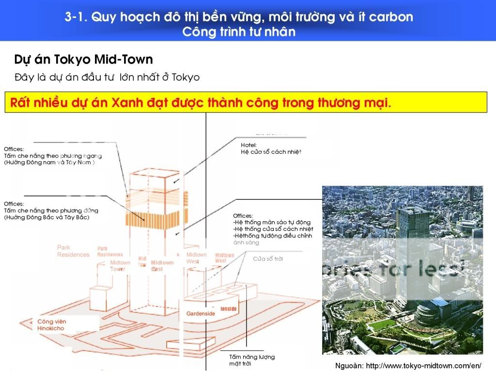- Không gian "Kiến trúc xanh"- Tham luận của các Kts. Nhật Bản. Đề tài đã, đang được thực thi ở thành phố Tokyo.