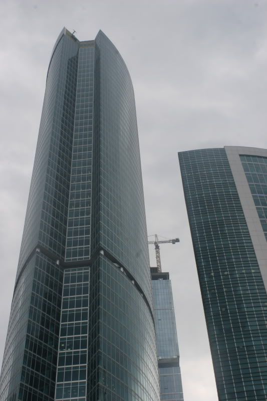 Để ý kỹ thì thấy có mấy chú châu Á đang làm việc. Hỏi ra mới biết đảm trách thi công tòa tháp to đoành này là nhà thầu Trung quốc. Ái chà chà, họ cóc thèm sử dụng nhân công Nga hay Tagzhik, Uzbek...mà lôi công nhân Trung quốc sang làm: