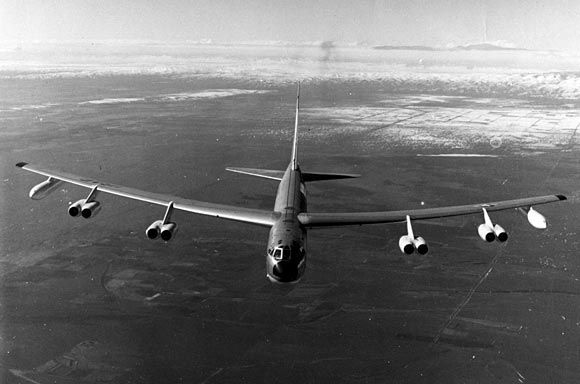 B-52D đang bay. Ảnh: US Air Force Bom nhiệt hạch B61 tại căn cứ Hill Air Force. Ảnh: US Air Force Các viên phi công chạy đến B-52 sẵn sàng cất cánh. 50% lực lượng SAC liên tục báo động mặt đất, sẵn sàng đến mục tiêu khi có cảnh báo của hệ thống tên lửa đạn đạo. Ảnh: US Air Force |