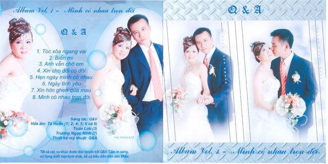 Em xin chân thành cảm ơn những tình cảm và những lời chúc mừng của các bác, các anh chị, các bạn và các em đã gửi đến chia sẻ niềm vui lớn của em trong những ngày qua. Em đi hết tuần vừa rồi mới về, công việc lại lu bu nên bây giờ mới có dịp giãi bày với các bác. Cũng nhân đây em xin được tiếp tục chia sẻ niềm vui của mình tới các bác qua đĩa nhạc mà ông bạn "yêu Quý" PhuongNn đã giới thiệu qua phần bìa đĩa. Em làm đĩa nhạc này vừa để kỷ niệm ngày vui của mình, vừa tặng quan khách trong ngày cưới cũng như chia sẻ với bạn bè xa gần. Tuy nhiên do thời gian gấp gáp nên đến ngày cưới em mới kịp in có 100 đĩa và mới kịp tặng một số ít, trong đó chắc 3N mới có 1-2 đĩa thì phải - hôm đám cưới bận quá em cũng không kịp hỏi bác TBHP không quản đường xa đến nơi đã kịp nhận đĩa nào chưa. Tuy nhiên em đã và đang tiếp tục in để tặng các bác, các bác vui lòng thông tin cho em mấy dòng tại đây luôn để em thu xếp nhé, các bác ở xa xin tập hợp cho em danh sách để em sẽ gửi một thể tới sau. Bây giờ để kịp tính thời sự, em xin xin giới thiệu để các bác có thể download và nghe trước. Em xin post luôn lời bài hát, các bác hát cùng với em cho vui Xin mời các bác download tại đây |