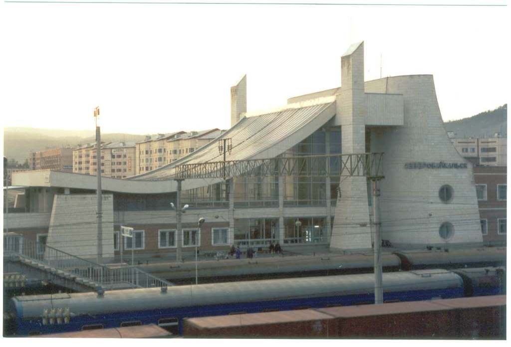 Trong ảnh phía bên phải nhà ga là tượng đài kỷ niệm sự kiện xây dựng "Mắt xích vàng"-điểm cuối nối các nhánh của BAM với con đường huyết mạch duy nhất.