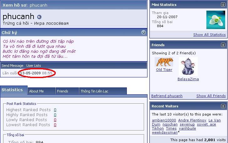 Không hiểu sao nick của phuongnn, vừa họp mặt ở Hà Nội, Miền Trung, và cũng post bài ầm ầm, mà lại "lần cuối 05-10-2009" ?