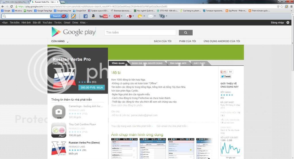 Bạn vào trang web : https://play.google.com/store/apps/d...Glza2kucnZwIl0. Một số hình ảnh về phần mềm như sau: [IMG] [/IMG][IMG] [/IMG][IMG] [/IMG][IMG] [/IMG][IMG] [/IMG]Các bạn tải phần mềm về, sau đó copy vào thẻ nhớ ĐT và cài đặt. 2. Trên điện thoại hệ điều hành Android, các bạn vào Play Store sau đó search phần mềm Russian verb pro, sau đó cài đặt phần mềm. Bước tiếp theo chắc mình ko phải nói nữa.