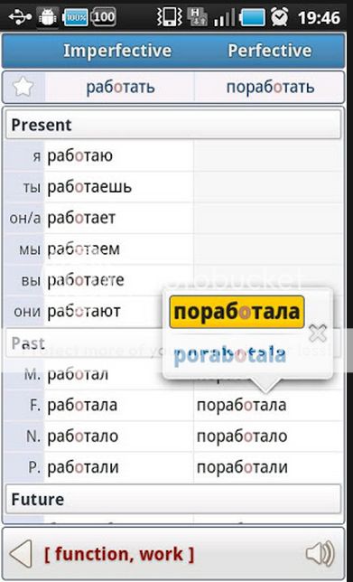 Để chia từ tiếng Nga (ko chỉ động từ mà các danh từ, tính từ,...) các bạn có thể dùng ABBYY Lingvo, có phiên bản dàng cho Android từ lâu rồi. Rất thuật lợi cho ai có vốn tiếng Anh kha khá (ko có tiếng Việt). Với ai ko rành English lắm thì tra xong, ấn vào Формы слова để xem chia từ