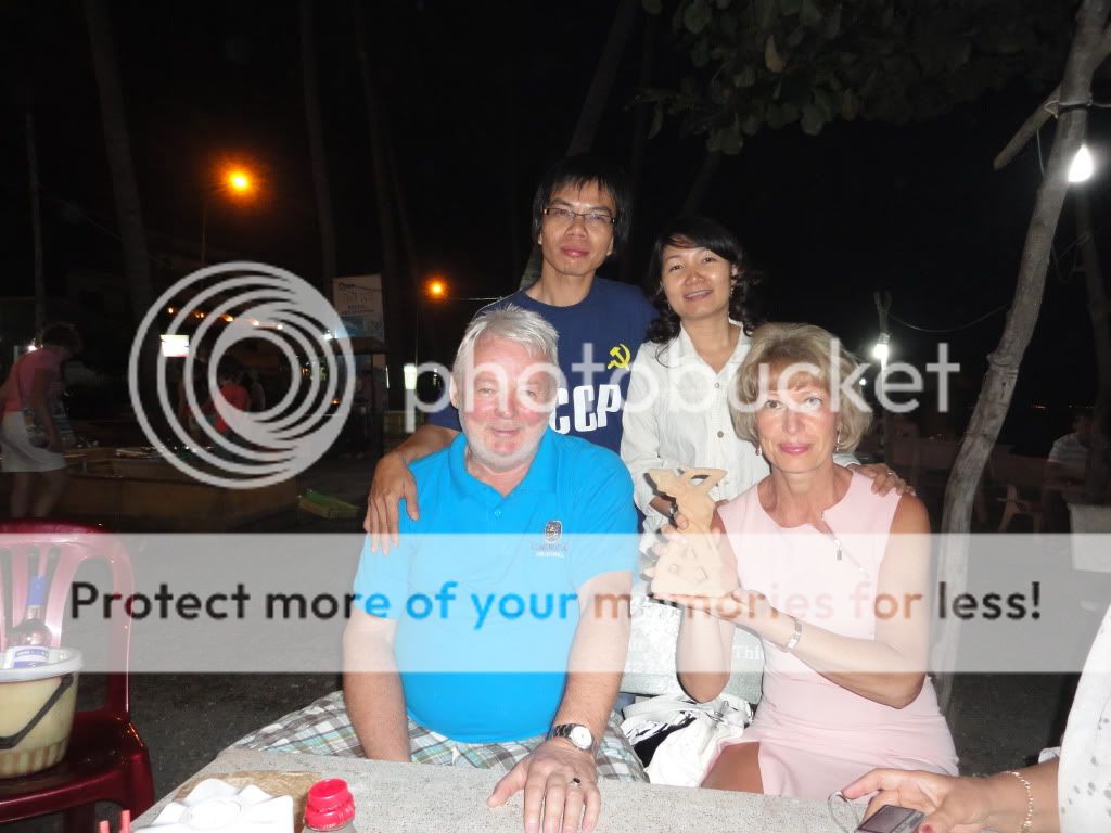 Htienkenzo tiếp tục cập nhật những "hoạt động văn hóa" của bác Nhnam và các bạn Liên Xô tại thành phố biển êm đềm Phan Thiết. Tối qua - Chủ nhật (18/12), cả đoàn đã dạo chơi và dừng chân ở một quán bình dân ven đường ngay bên cạnh bờ biển, dưới hàng dừa đã 40, 50 năm tuổi có lẻ - khu phố Tây, Mũi Né. ![]() ![]() Chương trình giao lưu văn hóa Nga - Việt. Những vật phẩm "su - ve - nhi - r" Việt Nam dành cho các bạn đến từ nước Nga: ![]() ![]() Một không gian thân mật, ấm cúng xen lẫn tiếng ì ầm của sóng biển vỗ bờ. "Bàn hội nghị" có được "một đội hình đẹp" ![]() Giao lưu văn hóa ẩm thực Nga - Việt. Bánh mỳ đen và mỡ muối: ![]() ![]() Tôm Hùm nướng: (bác Hoa May lấy sổ ra ghi nhớ món này nhé!) ![]() Du khách cả Tây lẫn Ta tự chọn lựa thoải mái trên vỉa hè ven đường. Giá rất mềm so với ở các nhà hàng ở Mũi Né và trong Phan Thiết: ![]() Và tận hưởng hương vị của hải sản được nướng trên bếp than hồng: ![]() Những chủ nhân của "thành phố đăng cai" - Phanthietgrad: ![]() Nhờ bác Nhnam và chandaingoaituyen chuyển lời cảm ơn - cảm ơn rất nhiều đến ông bà Victor và ông bà Piotr về những lời khen tặng dành cho cô bạn gái của htienkenzo nhé!