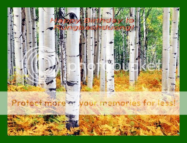Chúc mừng sinh nhật rung_bach_duong. Chúc mạnh khỏe, mọi điều may mắn, tốt lành và hạnh phúc.