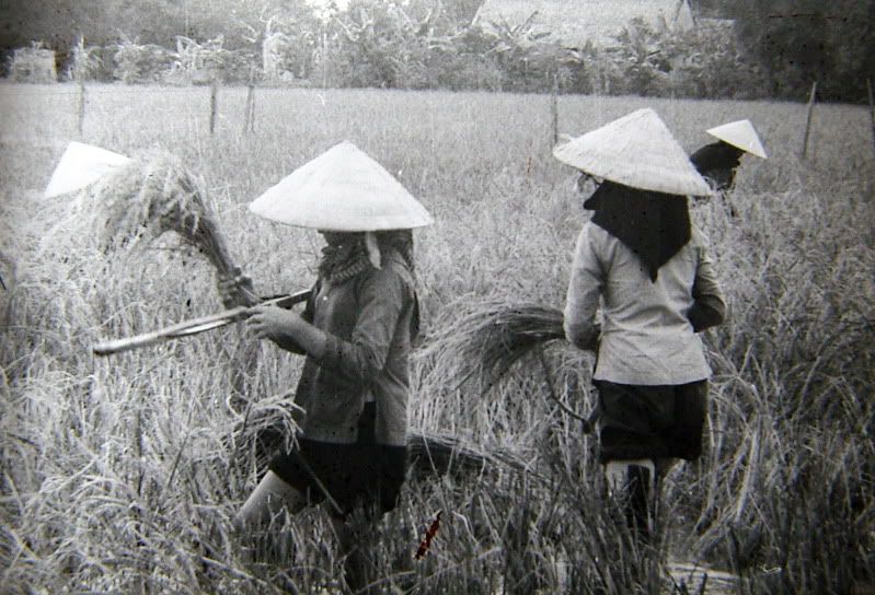 Còn đây là ảnh Viktor chụp tại Hải Phòng năm 1967, cảnh bà con nông dân Việt Nam đang thu hoach lúa: