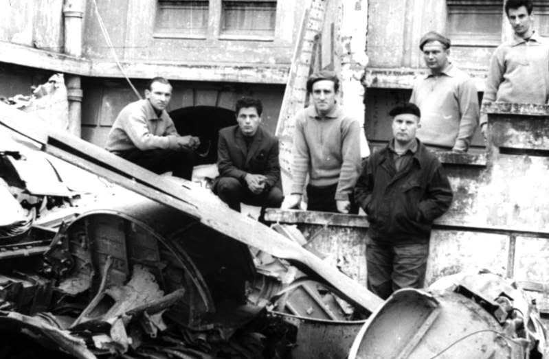 Và họ đây, cách đây 44 năm, cũng cạnh xác máy bay Mỹ ở Hải Phòng. Viktor Polyarski đội mũ nồi đứng đầu: