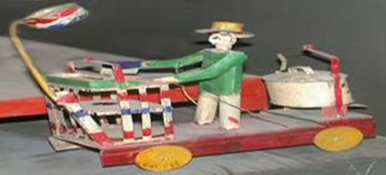 Ấy là cái đồ chơi làm bằng sắt Tây ở phố Hàng Thiếc Hà Nội. Cái xe cho trẻ con chơi dùng sắt của hộp sữa bò có bốn bánh. Trên xe có làm hình nhân một tay đội mũ phở, bên gánh phở tay cầm con dao và khi trẻ kéo xe thì lưỡi dao thái thịt của gã bán phở cứ nâng lên hạ xuống phầm phập nhịp nhàng trên mặt thớt. Đồ chơi này giống như con thỏ sắt Tây đánh trống sau này thường thấy bán ở chợ Hàng Mã, Hà Nội mỗi dịp Trung Thu.