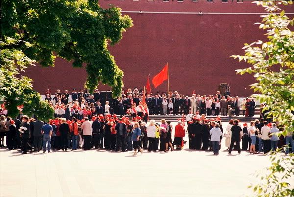 Sau buổi lễ, các Đội viên trẻ đã cùng những người cộngsản đặt hoa bên Lăng Lênin và chụp ảnh lưu niệm với lãnh tụ của KPRF.