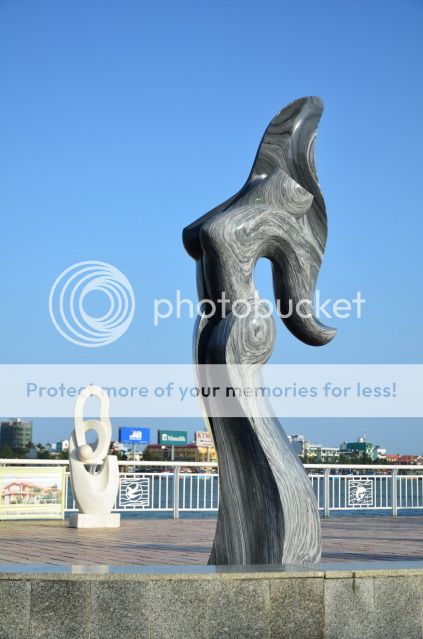 Tượng đá Non Nước được bày dọc bờ sông để du khách thưởng ngoạn