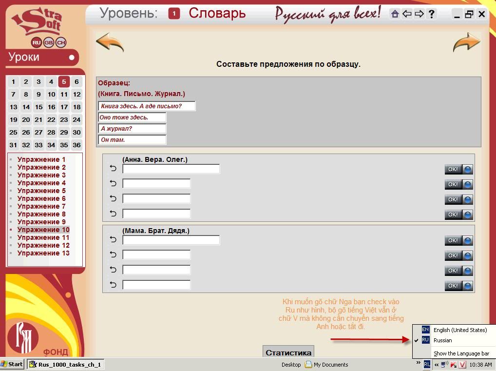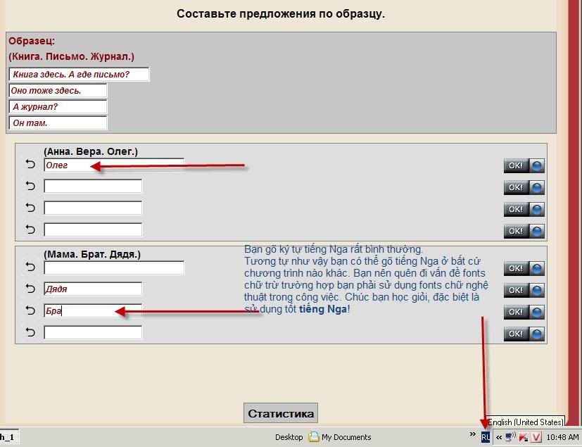 Muốn gõ tiếng nga vào phần bài tập trong này thì làm thế nào ạ? Em cài tiếng nga trong máy rồi mà không gõ được tiếng nga trong phần này. Hay là phải dùng vietkey ạ?
