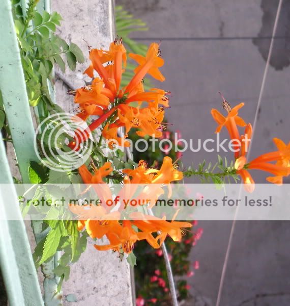 Hoa Rạng Đông đã vươn ngoài hàng rào, rực rỡ(bên dưới là bồn Thu Hải Đường cũng đang nở đầy hoa)