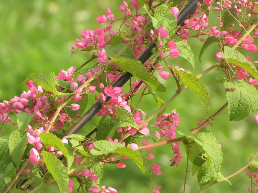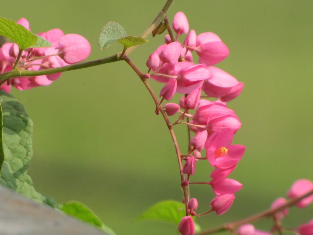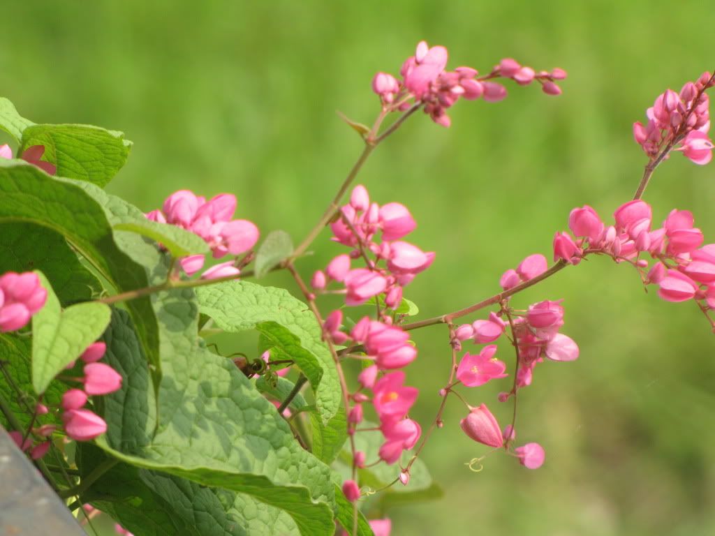 To bác Chaika: Máy của "chai rượu to" nhà em bác ạ, cũng không xịn đâu ạ(Canon SX10 IS) nó chụp xa được. Hoa Tigôn thì của...hãng xóm, nhưng bên ấy không bắc giàn cho hoa leo, nên nó bò theo dây điện và ....bám đầy ban công nhà em. Tuy gọi là hoa nhà, nhưng gốc ở ...bên kia bác ạ!