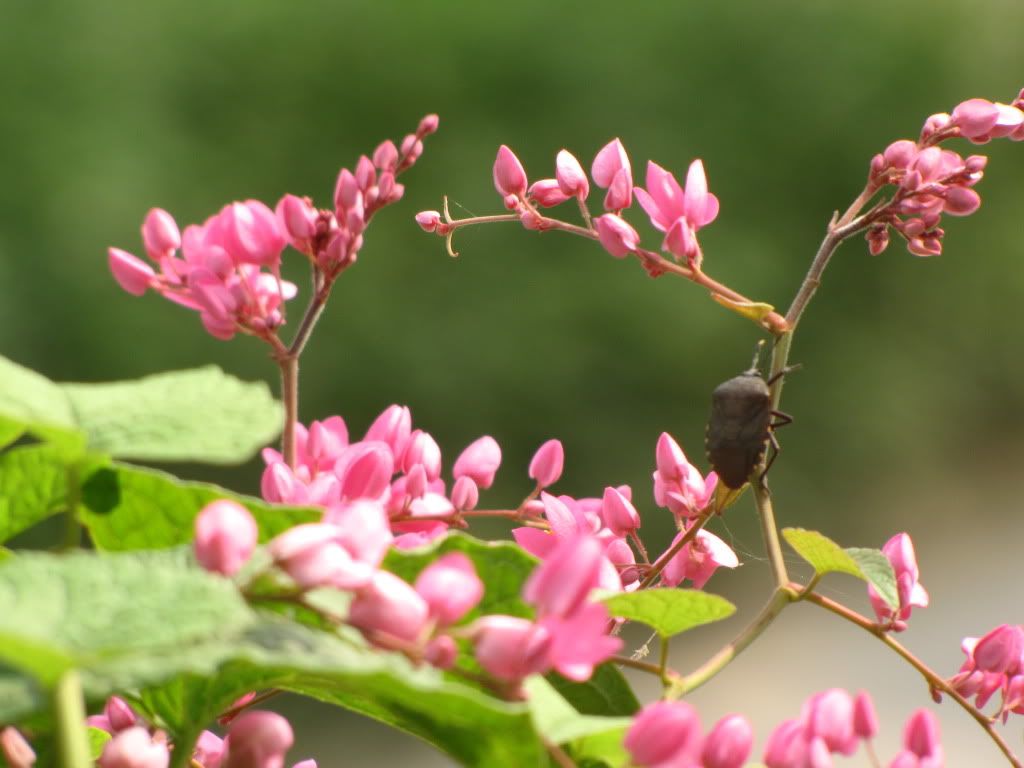 Máy của bác Catograph xịn quá. Ngồi ở cửa sổ mà chụp thấy rõ côn trùng thế này (hình như con bọ xít). Hoa tigôn nhà bác đẹp thật, Bác có cái ảnh nào toàn cảnh không? Trích: