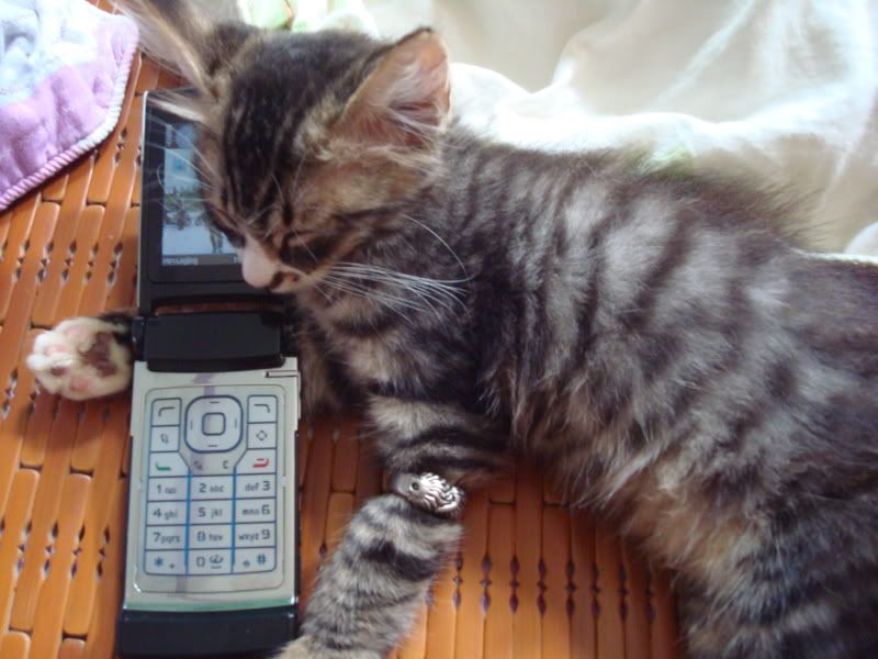 Mèo cưng của nhà chị Đinh nghe được cả di động