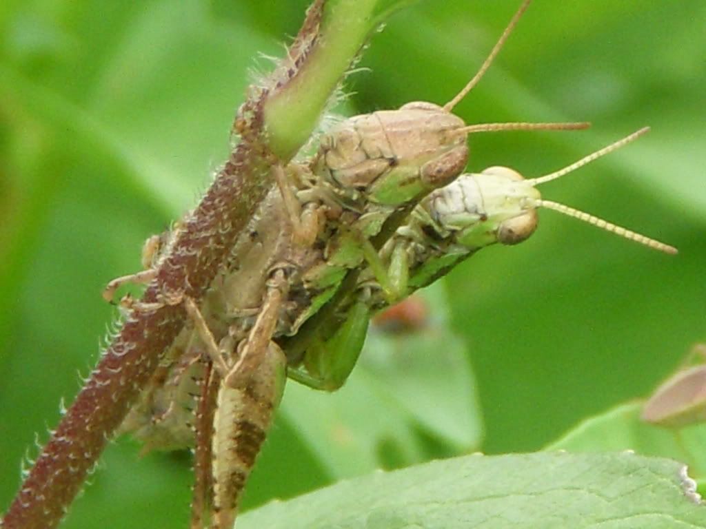 Trong khi vẫn chưa có một đêm trăng tỏ để chụp hoa cỏ may(vì mấy hôm nay trời Hà Nội xấu quá, mưa suốt!), em và phụ tá nhỏ ra bãi cỏ trước nhà ...săn côn trùng. Từ hôm kia mạng mẹo nhà em bịa dia, giờ mới vào được , trình bà con xem cho vui ạ!