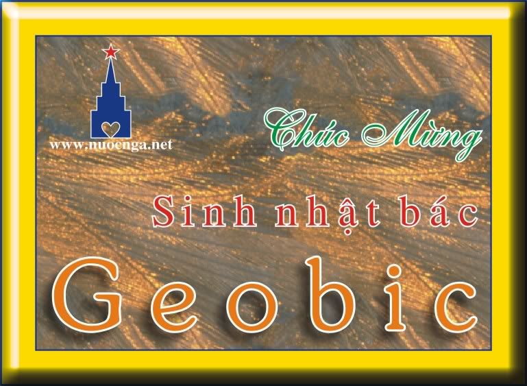Chúc mừng bác Geobic nhân ngày sinh. (20-10) Chúc bác Geobic luôn mạnh khỏe, trẻ và cho dù bác Geobic đang ở Mỹ, Pháp hay Úc...cũng luôn nhớ về NNN. Chúc bác Geobic vừa từ Đức trở về VN an toàn!