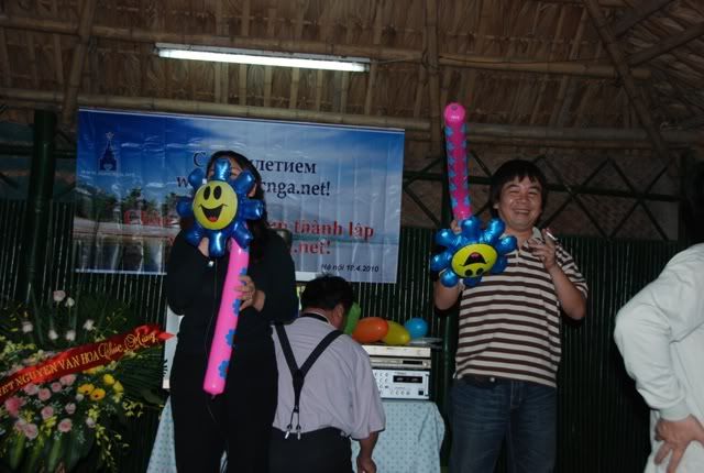 Nhà sàn năm ngoái đang sửa chữa. Tôi đã đặt ở khu nhà gần đó, ngồi ghế và bàn, có chỗ để "sân khấu". Các bác gái có thế "thướt tha" vô tư.