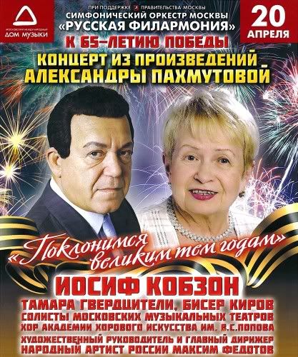 Nhân 65 năm chiến thắng phát xít và nhận huân chương “Vì những công trạng với Tổ quốc” hạng 1 - «За заслуги перед Отечеством» I степени. Chương trình ca nhạc của nữ nhạc sĩ lão thành A. Pakhmutova: