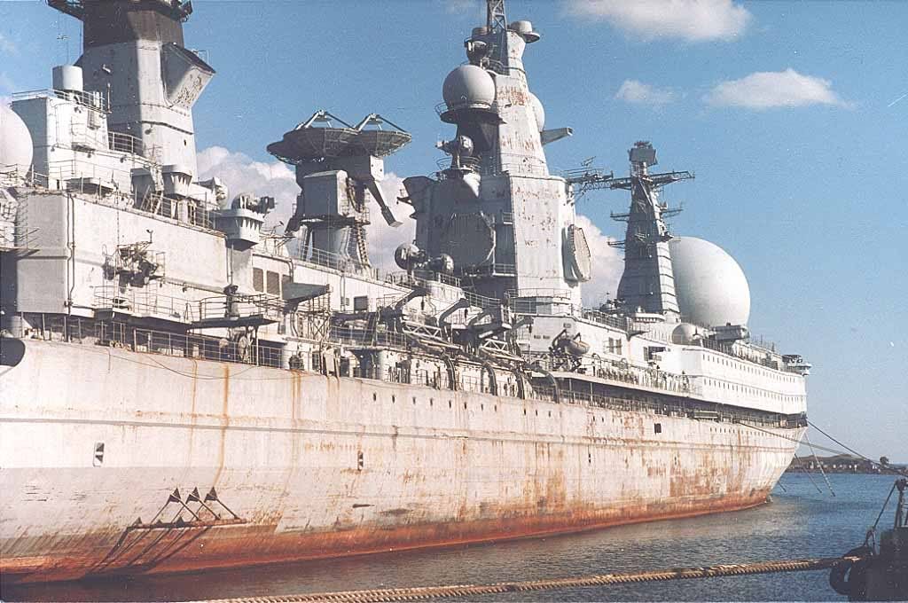 Несколько лет назад «Уралу» подлатали днище на местном судостроительном заводе. Однако специалисты так и не смогли устранить крен в 5 градусов. Потом атомного разведчика пришвартовали к стенке, где он застыл в ожидании своей дальнейшей судьбы. По данным с судостроительного завода, именно так начиналась консервация российских авианосцев перед их продажей за рубеж.)