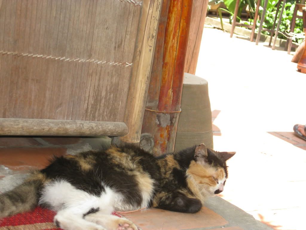 Và cả chú mèo tam thể dễ thương nằm lim dim trên hè, ngoài sân đầy nắng oi ả...