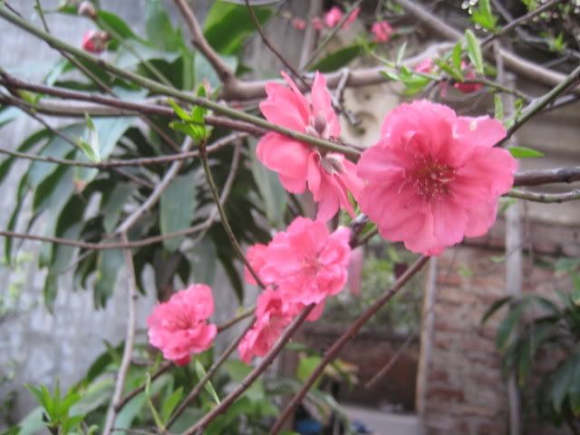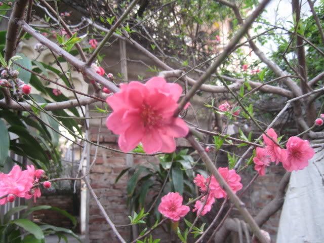 Hi hi, cây đào nhà BZ lần trước chụp post trên NNN giờ này nó đã nằm ở một góc vườn rồi. Còn đây là cây đào đã từ lâu, mọi năm bình thường nó chỉ ra vài cái hoa thôi GMS ạ, nhưng không hiểu sao năm nay lại có nhiều hoa vậy, bông rất to mà đẹp nữa. Hay là tại cây tích tụ chất dinh dưỡng mấy năm để ra một thể nhỉ
