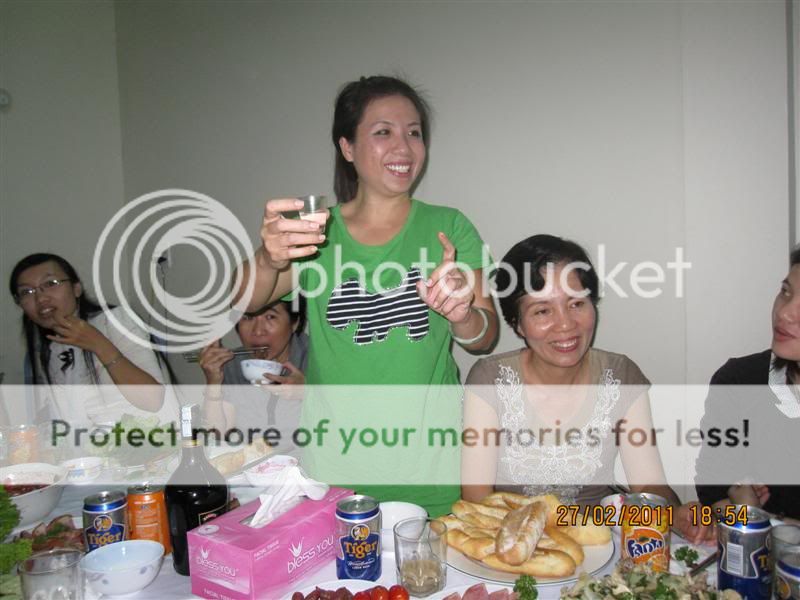 Như đã thông báo, hôm qua 27.2.2011, QKĐN có cuộc off tưng bừng đầu năm Tân Mão rất đậm chất Nga. Địa điểm : Nhà riêng bạn Mikola ở Hoà Cầm, tp. Đà nẵng. Các mem cũ gạo cội và nhiệt tình, các mem mới bỡ ngỡ nhưng nhanh chóng hoà nhập vì không khí chan hoà và ấm áp, thiếu mấy nhân vật cũ như Gionhe, Cogaidigan...vắng mặt vì việc riêng. Khách mời là chị Nhina, khách quen của chủ nhà Mikola. Xin được post vài tấm ảnh tường thuật : Địa điểm họp mặt ![]() Bước chuẩn bị " mồi" với sự "chỉ đạo" không thể thiếu của các mama Anka, Thoixavang và HoTruong ![]() Lò nướng chuyên dùng ![]() Quạt lò với cái quạt bị mất tuốc năng, cứ xoay qua xoay lại mãi nên " ông chủ" phải đứng cầm và điều chỉnh, thay cho cái tuốc năng... ![]() "Mồi" và "nước trà" đang được dọn lên, trong đó thấy có món xôi lạc do tác giả HoTruong chế biến, món ăn đã có lần bị mất trên đỉnh Bà Nà năm nào... ![]() " Nước trà" các kiểu ![]() Chuẩn bị cho món Saxluc do bạn Lương chuẩn bị. "Ông chủ" thì xớ rớ gần đó, đợi chj em "sai bảo" ![]() Chị Nhina ra giúp ![]() "Chief cook" Nga thứ thiệt ![]() Sản phẩm ![]() Các món ăn Nga khác ![]() ![]() ![]() Cụng li trong tiếng nhạc Nga êm dịu, tình tứ và rắn rỏi! ![]() ![]() Bạn HoTruong : Li này của iem là tuần thứ 6 rồi đấy nhé! ![]() " Ông chủ nhà" vui tính và hết sức nhiệt tình : Có trà cho chị em đây... ![]() ...và hát ![]() ![]() ![]() ![]() ...Hết mình...