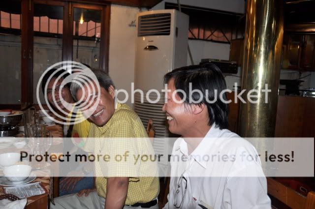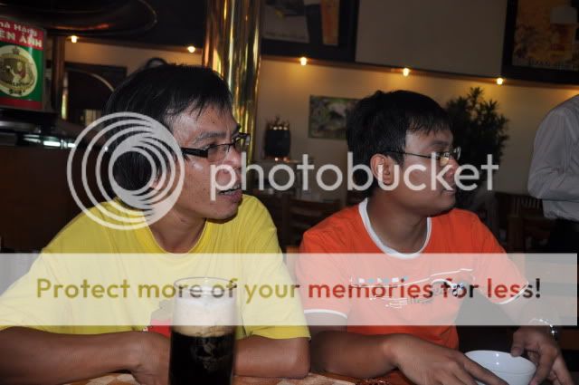 Buổi “họp và tiệc trà” hôm đó còn có bác Ninh (áo trắng) cười nói rổn rảng, bác Bộ trưởng lúc trầm lúc bổng tranh luận “muốn cải tiến thì trước hết phải … cải lùi”. Bác Lạc xuất thần hát cười dí dỏm luôn miệng (không biết có phải vì ngồi đối diện với "em gái" xinh đẹp của Thanh Nam?!) Bạn Virus cười mủm mỉm (chắc vì hôm nay vừa tuyên bố sắp … “ký chung thân” ), em trai thư sinh má hồng nắng từ Vũng Tàu Chicktomsk.