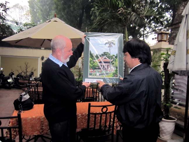 Tieuboingoan tươi cười tặng cụ Viktor Nikolaevich Bolyarskii “Cafe sáng tạo”.