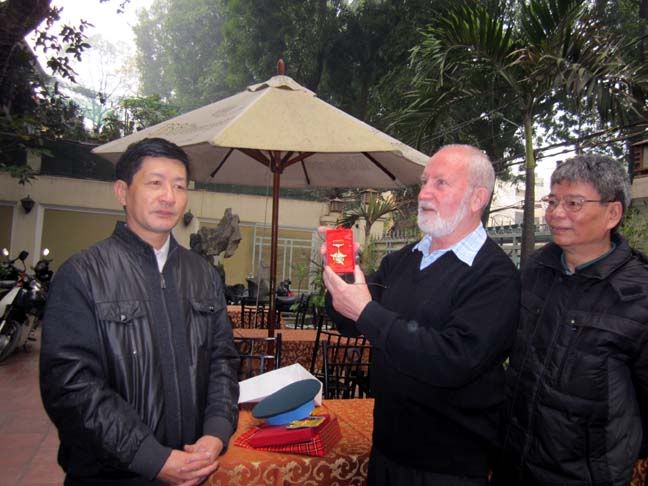 Hongducanh thay mặt QKTĐ tặng cụ Viktor Nikolaevich Bolyarskii chiếc mũ và một bộ quân hàm cấp tá (cầu vai, phù hiệu ve áo) của lực lượng Phòng không - Không quân QĐND Việt Nam.