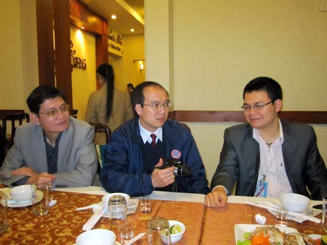 Nhà Hàng Phù Đổng(nghe rất Việt!) trên đường Tăng Bạt Hổ. Trời mát, sau cuộc hơi lạnh, mưa Xuân nặng hạt. Vậy mà ai cũng hồng hào vì không khí nóng trong phòng trà...Thôi, mời bà con xem tạm đã( bình luận ghi chú sau)