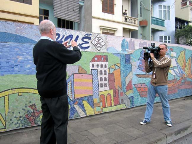 Nhìn ảnh từ hôm cụ Viktor Nikolaevich Bolyarskii ngồi ở phòng làm việc của Hungmgmi đến hôm qua thấy cụ có vẻ già hơn, chắc cụ cao tuổi nên chuyến đi này với cụ cũng hơi mệt. Đi theo cụ, mình thấy đến chỗ nào cụ cũng lấy máy ảnh ra chụp ảnh rất say sưa. Hôm qua cụ cả buổi chiều đứng ngoài trời mưa, gió lồng lộng bọn mình chỉ sợ cụ ốm nên cứ dục VTV4 bớt cảnh quay.