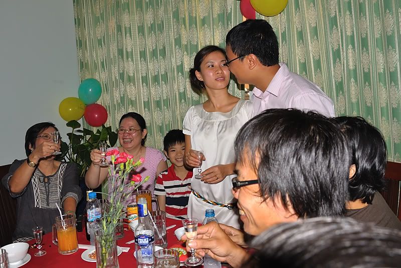 Hai thành viên đẹp đẽ và nổi bật nhất của hôm đó thì khỏi nói các cũng dư biết. Gớm qua đợt tổng công diễn ở hôm 16/1 ở Hải Phòng rồi có khác, lần này ra dáng đôi chủ nhà ghê, một điều vợ chồng em, 2 điều vợ chồng em nhé. Riêng cái màn hôn nhau kiểu Pháp hóa ra là thật (vì mọi người không cho diễn) cũng bõ công các tiền bối ngồi dốc cạn “chén đắng” các bác nhỉ. Còn AT, có lẽ 48 năm vất vưởng trên dương gian này chưa được ai hôn kiểu đó bao giờ và cũng chỉ toàn xem trên phim nên hôm đó cứ thấy lòng nao nao, thầm nghĩ: nhỡ mai mình die coi như vĩnh viễn chả biết hương vị ấy như thế nào rồi.