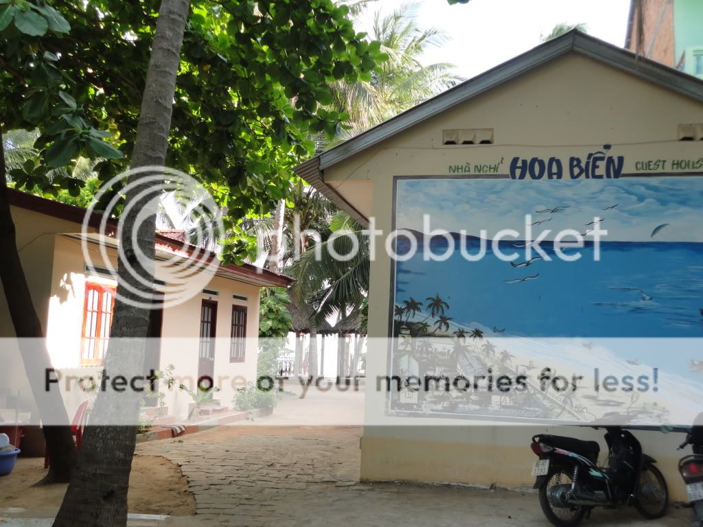 Khu nhà nghỉ Hoa Biển từ sân để xe (rộng rãi) nhìn vào: