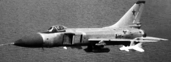 ![]() ![]() ![]() ![]() Phi hành đoàn : 01 Dài : 19,56 m Sải cánh : 9,34 m Cao : 4,84 m Trọng lượng không tải : 10.874 kg Tối đa khi cất cánh : 17.200 kg Động cơ : 02 động cơ phản lực Tumansky R-13F2-300 có sức đẩy 4.068kg mỗi cái (7.078kg mỗi cái khi tái khai hỏa). Tốc độ : 2.230 km/giờ Cao độ : 18.100 m Tầm hoạt động : 1.780 km Hỏa lực : 02 đại bác 23mm UPK-23-250; 02 tên lửa R-98M (AA-3 Anab); 04 tên lửa R-60 (AA-8 Aphid). Bay lần đầu : 30/5/1962 Số lượng sản xuất : 1.290 chiếc Quốc gia sử dụng : Liên Xô-Nga. |